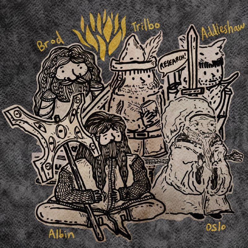 My fiancé is a Shadow Master (Shadowdark Role-Playing Game Master) and we have a little party (literally) of a goblin, two halflings, and two dwarves: